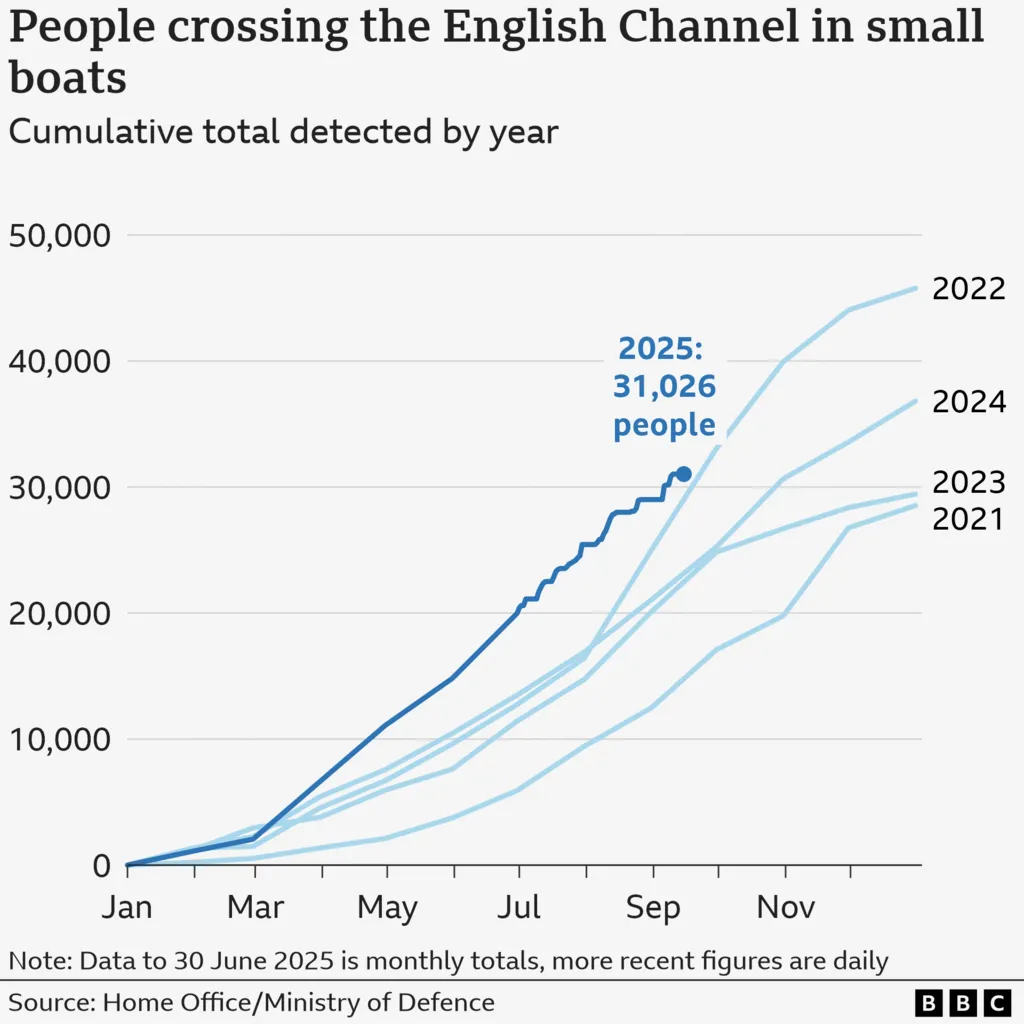 More than 30,000 people have crossed the Channel in small boats so far this year.