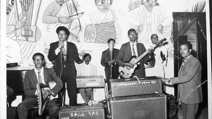 Bereket moved to Addis Ababa in the 1960s. There, he worked as a barber for a year. One of his clients, Tekle Beyene, an Eritrean dance teacher at the Haile Selassie Theatre, came in for a haircut. Pleased with Bereket’s work, Tekle invited him to a restaurant, where he noticed a krar hanging on the wall. Bereket picked it up and played, immediately surprising Tekle with his talent. Tekle asked him, “Why are you working as a barber?” The very next day, Tekle took Bereket to the Haile Selassie Theatre, where he was invited to perform with the Theatre Orchestra. There, he started covering folk songs using the krar and the oud, a traditional stringed musical instrument. He then began writing his own lyrics, explaining that he did so because there was no one available to compose Tigrigna lyrics for him. At the time, he had the opportunity to tour both across the country and internationally, while also running a small music shop with his wife.